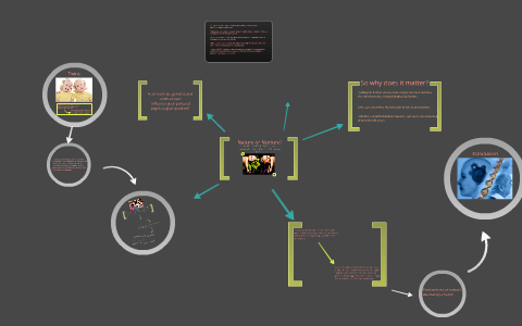 Nature refers to how our genetic makeup affects our physical and mental health, while nurture refers to how our environment affects our physical and mental health. Nurture The Nature versus Nurture debate concerns the relative importance of an individual's innate qualities versus personal experiences in. The nature versus nurture debate is about the relative influence of an individual's innate attributes as opposed to the experiences from the environment one is brought up in, in determining In the "nature vs nurture" debate, nurture refers to personal experiences (i.e. empiricism or behaviorism).